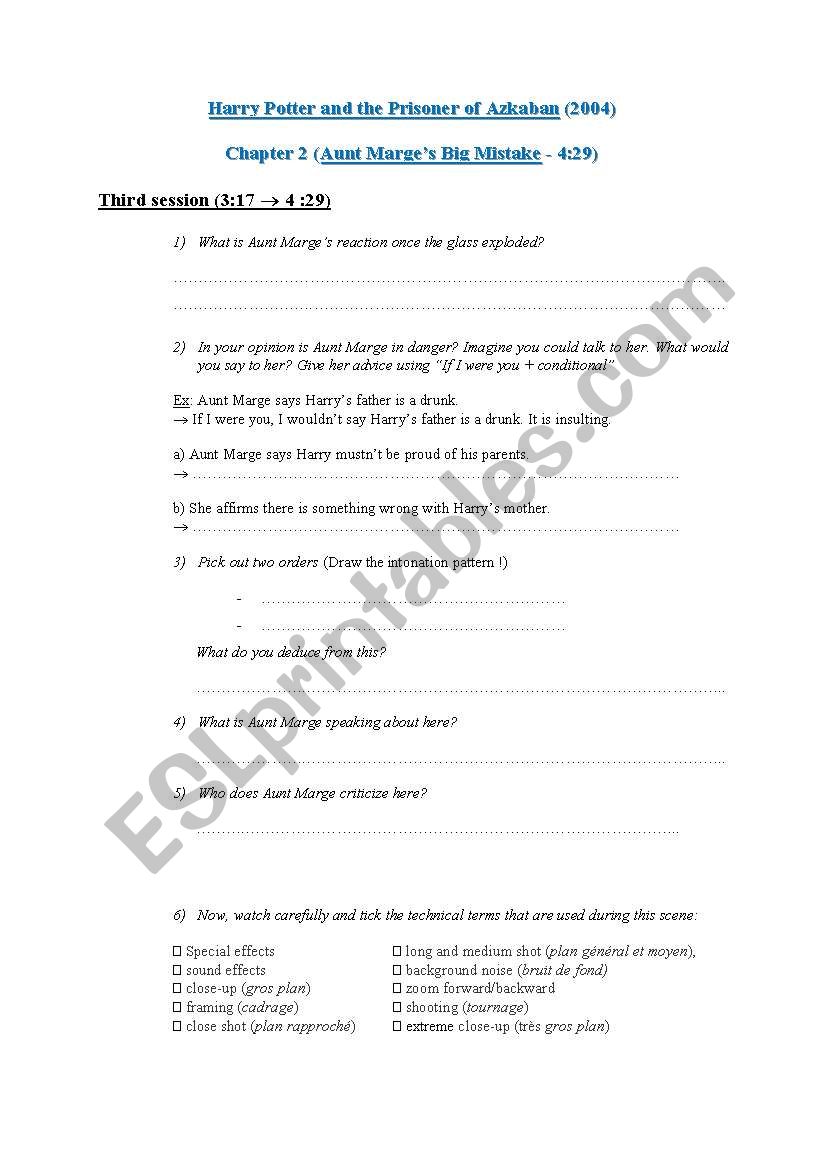 Harry Potter And The Prisoner Of Azkaban Chapter 2 Aunt Marge S Big Mistake Esl Worksheet By Nums